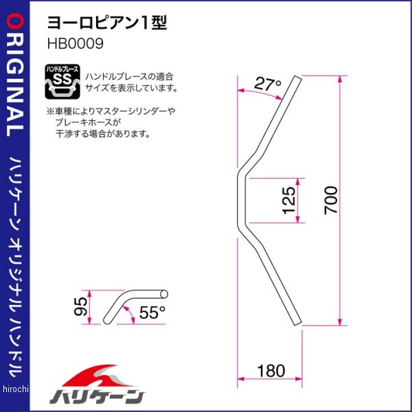 ハリケーン ハンドルキット02年-08年 ヤマハ マジェスティ125ポジション:全幅 -0mm 高さ +30mm バック +0mm適合ブレースサイズ:SS【キット内容】・ヨーロピアン1型ハンドル(スイッチ穴加工済み)・ハンドルセッター/カーボン柄ステムプレート付き・セットバックホルダー※ポジションは標準的な取付けのバーエンド位置での比較ですが、ハンドル取付角度によって高さとバックの数値は異なります。※ケーブル、ホース類はノーマルのままで取付可能。【特徴】交換に必要な最小限のパーツのみをセットにしたキット販売の製品で、ハンドルバーには車種専用のスイッチ穴加工を施してあります。