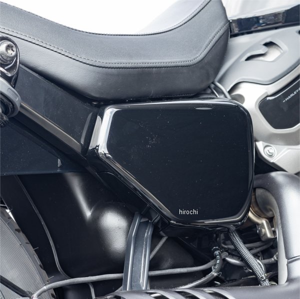 キジマ ETC取付ステー22年 ハーレー ナイトスター RH975カラー:ブラック別体式ETCをサイドカバー内に収めることで車体のデザインを崩すことなく装着できるようになります。横に開閉するタイプのシートを採用しているので、ETCケースを横に取り付けた際の張り出し具合や、サイドバッグ取付時に必要になる車体サイドのスペースなどを考慮した結果この形に辿り着きました。ETC車載機本体は付属の両面ファスナーにて固定。日本無線社製 JRM-11/12、ミツバサンコーワ社製 MSC-BE51/BE51W/BE700の別体式ETCに対応。スチール製 ブラック仕上げ