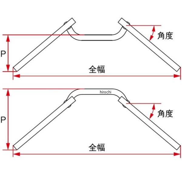 ハリケーン アジャスト ハンドル TYPE-205年-17年 ヤマハ マグザム02年-08年 ヤマハ マジェスティ12512年-17年 ヤマハ マジェスティ250 YP25095年-99年 ヤマハ マジェスティ250(4HC)00年-06年 ヤマハ マジェスティ250(SG03J)07年-11年 ヤマハ マジェスティ250-SG20J外径φ22.2mm 内径φ17.6mm ホルダー部取付幅80mm汎用タイプ 絞り角8°タレ角、65mmオフセット調整可能グリップ部分の有効直線 220mmスチール製クロームメッキ汎用サイドキャップ※ハンドルスイッチ穴開け加工が必要です。※汎用サイドキャップはハンドル内径がφ17.6mmの為、インサート軸付(HB0302/HB0307)、ウエイトバランサー、ハンドル延長バーは取付できません。※記載車輌はケーブル、ホール類はノーマルのままで取付可能。 サイドキャップはインサート軸なしが適合。マジェスティ125/DX/FI(98年-08年 5CA)ハンドルセッター(HB0675)、ホルダー(HB0651)が必要マジェスティ250(95年-06年 4HC/5CG/5GM/5SJ)ステムカバーの併用推奨【特徴】調整範囲の広い可変ハンドル。シーンに合わせて手軽にポジションを変更できます。・内入り角度の調整ハリケーンセパレートハンドルで実績のあるセレーション加工により8度きざみで内入り角度が調整できます。角度の目安となる刻印を合わせた位置は内入り角32度になります。安全に操作が出来るように内入り角度は48度以下に設定してください。また、センターバーの前後の向きを変えることによってもポジション変更できます。