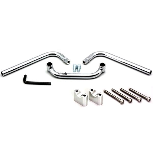 ハリケーン アジャスト ハンドル TYPE-202年-07年 カワサキ エプシロン25007年-17年 スズキ スカイウェイブ250 TypeM03年-17年 スズキ スカイウェイブ250 TypeS03年-08年 スズキ スカイウェイブ400 TypeS外径φ22.2mm 内径φ17.6mm ホルダー部取付幅120mm汎用タイプ 絞り角8°タレ角、65mmオフセット調整可能グリップ部分の有効直線 220mmセットアップホルダーH45付きスチール製クロームメッキ汎用サイドキャップ※ハンドルスイッチ穴開け加工が必要です。※センターバーは前向き不可。※汎用サイドキャップはハンドル内径がφ17.6mmの為、インサート軸付(HB0302/HB0307)、ウエイトバランサー、ハンドル延長バーは取付できません。※記載車輌はケーブル、ホール類はノーマルのままで取付可能。 サイドキャップはインサート軸なしが適合。【特徴】調整範囲の広い可変ハンドル。シーンに合わせて手軽にポジションを変更できます。・内入り角度の調整ハリケーンセパレートハンドルで実績のあるセレーション加工により8度きざみで内入り角度が調整できます。角度の目安となる刻印を合わせた位置は内入り角32度になります。安全に操作が出来るように内入り角度は48度以下に設定してください。また、センターバーの前後の向きを変えることによってもポジション変更できます。