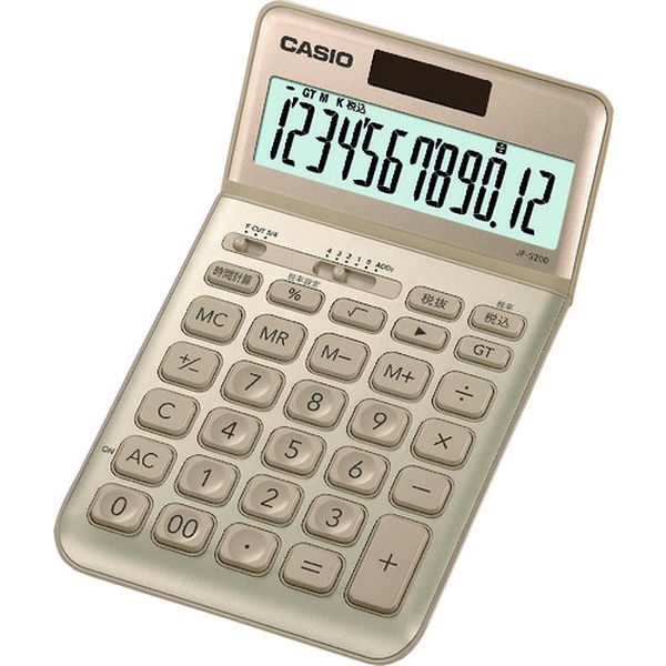 ・優雅に美しく、洗練されたスマートデザインです。・薄型フォルムでスタイリッシュなジャストタイプです。・優雅に美しく洗練されたスマートデザインスタイリッシュ電卓12桁ジャストタイプ・桁数:12・縦(mm):183.5・横(mm):109・厚さ(mm):10.8・色:ゴールド・税計算、時間計算、総合計機能付・ソーラー+内蔵電池・生産国 フィリピン・JANコード 4549526604287・質量 150g・コード:137-2680 ・品目:JFS200GDN