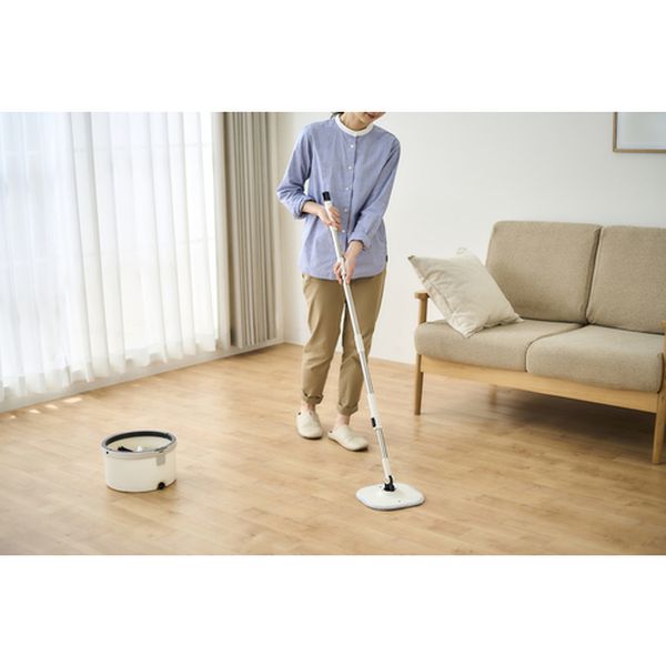 ・汚水分離式で常にキレイな水で洗浄できる家庭用の回転モップです。・キレイな水と汚れた水が溜まるタンクが分かれています。・モップを回転させるとキレイな水のタンクから水が遠心力で汲みあがりモップを洗浄します。・バケツ内のブラシに突起がついているので髪の毛やほこりなど絡めとります。・ヘッド形状がコンパクトかつ四角形なので小回りが利き、階段隅などでも掃除がしやすいです。・排水も栓を抜くだけで簡単です。・柄の部分が分解できるのでコンパクトに収納できます。・清掃に。・幅(mm):225・奥行(mm):225・高さ(mm):1060~1330・容量(L):1.5・バケツサイズ(mm):Φ275×155・モップ柄:長さ1060~1330mm(組み立て時)・モップ:225×225mm・モップ柄:ステンレス・ポリプロピレン・ABS樹脂・モップ:ポリプロピレン・ポリエステル・バケツ:ポリプロピレン・TPS・バケツ、モップ柄(上・中・下部)、モップヘッド(モップセット済み)、交換用モップ、交換用排水栓(予備)・生産国 中国・JANコード 4967576705813・質量 1250g・コード:667-5445 ・品目:KMTCW