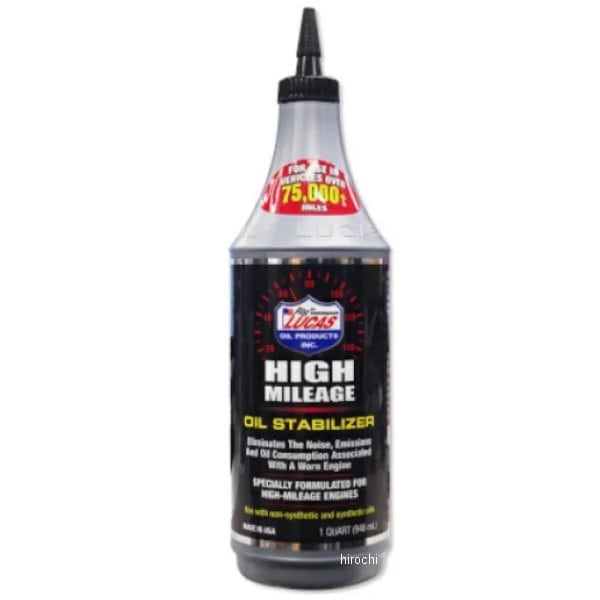 L10118 ガッツクローム LUCAS ハイマイレージ オイルスタビライザー 12ozハイマイレージ オイル スタビライザーはルーカスオイルが最大限の信頼性を得るために開発、テストされています。エンジンやギアボックスの幅広い用途に使用できるように、高級ベースオイルと石油抽出物を特別にブレンドされた100%石油製品です。利点として、油圧の安定化による燃費の向上・エンジンノイズの軽減・スラッジの堆積防止・ノッキングの防止・オイルの劣化軽減・ドライスタートの排除が上げられます。使用量はオイル80% + ハイマイレージ オイル スタビライザー20%です。エンジンオイル、トランスミッションオイルどちらにも同じ割合で使用できます。組付け時のアセンブリールーブとしても使用可能です。内容量 1クォート(946ml)