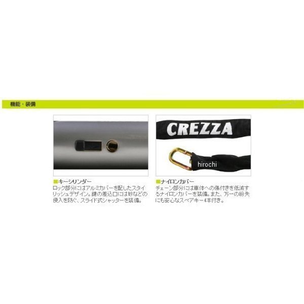 LC-400A リード工業 クレッツァ CREZZA-V チェーンロックカラー:黒サイズ:直径10X長さ1800mm重量:4000g付属品:スペアキー4本角型シャックル+角型チェーンで極めて高い耐切断性を発揮。ロック部分にアルミカバーを配したスタイリッシュなデザイン。チェーン部分には車体への傷付きを防ぐナイロンカバーを装備。砂などの侵入を防ぐキーシャッター付き。