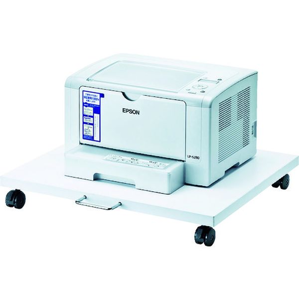 ・レーザープリンタなどの機器を机の下に収納するカートです。・ハンドル付で前後の移動が行いやすくなっています。・キャスターは差し込み式なので、簡単に組み立てることができます。・間口(mm):500・奥行(mm):545・高さ(mm):78・耐荷重(kg):40・色:ホワイト・キャスター付・耐荷重:40kg・組立式・天板:木(メラミン化粧板)・キャスター:ナイロン・生産国 中国・JANコード 4969887141090・質量 4.800kg・コード:818-3904 ・品目:LPST100N