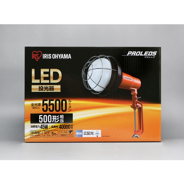 ・現場の照明に最適な広く明るい光です。・消費電力が少ないため、ひとつの発電機で多数使用可能です。・明るさ(lm):5500・幅(mm):197・奥行(mm):344・高さ(mm):379・コード長さ(m):5・消費電力(W):45・電源(V):100・最大口開き(mm):90・口金:E39・標準消費電力料金:1.22円/h・光源色:昼光色・保護等級:IP54・光源色:昼光色・電線種:VCT0.75mm[[の2乗]]×3芯・配光角:120°・設計寿命:40000時間・プラグ:折りたたみ可・電源線種:VCTケーブル・生産国 中国・JANコード 4967576310970・質量 2.600kg・コード:859-5246 ・品目:LWT5500CK