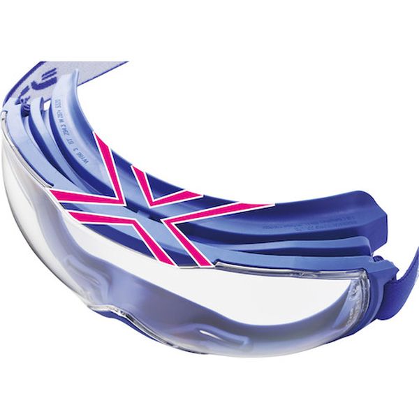 ・革新的な視野を確保したゴグルです。・上下・左右が見渡せる大きなアイピースを採用しています。・X型のフレームが柔軟に動くので、いろいろな顔の形状にフィットします。・ベンチレーター(換気口)付きで、内部が曇りにくい構造です。・視力矯正めがねの上からかけられます。・安定感のある30mmの幅広いヘッドバンドを採用しています。・非常に強い防曇性能があります。・アイピース・ヘッドバンドが交換できます。・メタルフリーなので軽量です。・日本人の顔の形に合わせたデザインです。・浮遊粉じん・液体飛沫防止・飛来物等・レンズ色:クリア・バンド色:ブルー・フレーム色:ブルー・幅(mm):193・高さ(mm):85・長さ(mm):85・レンズ厚(mm):2.4・コーティング:○・防曇加工:○・防傷加工:○・UVカット:○・顔あたりソフト:○・レンズ交換:○・メガネ併用可否:可・マスク併用可否:可・通気孔:○・レンズ厚:2.4mm・JIS T 8147:2016、EN166:2001クラス1適合品・EN166:2001 クラス1適合品・UV400カット(400nmまでの紫外線を100%カット)・半面形面体(防じん、防毒マスク)との併用ができます。・ベンチレーター(換気口)付・アイピース:ポリカーボネート(PC)・フレーム:ポリカーボネート(PC)、熱可塑性エラストマー(TPE)・生産国 ドイツ・JANコード 4959382073354・質量 95g・コード:526-0524 ・品目:LX91