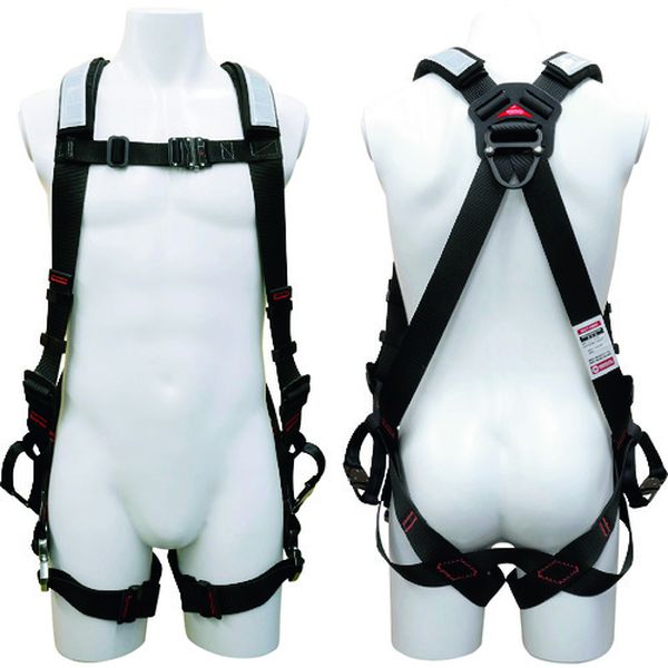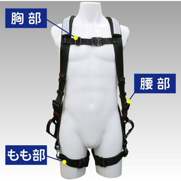 ・腰のベルト交差部が可動し、身体の動きにフィットします。・体格に合わせて胸前・腰・ももの3か所のベルトで調節可能です。・骨盤と足回りにベルトを配置しています。・落下時の衝撃を分散し、局所的な荷重集中を軽減します。・現在ご使用中のワークポジショニング用ベルト(柱上安全帯用ベルト)に装着可能です。・肩パッド及び胴ベルト取付アダプターが標準セットされています。・肩パッドはソフトで軽量なクッション材を使用しています。・電気工事、その他高所作業用。・サイズ:M・「墜落制止用器具の規格」適合品・使用可能質量:130kg(M・L共通)・肩パッド・胴ベルト取付アダプター・ワークポジショニング用ベルト(安全帯)は別売りです。・生産国 日本・JANコード 4992456330014・質量 1170g・コード:161-1082 ・品目:MATH800