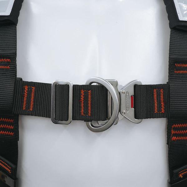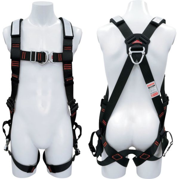 ・胸ベルト部分と背面の両側にD環が付いてます。・腰のベルト交差部が稼働するので身体の動きにフィットします。・体格に合わせて3か所(胸前、腰、もも)のベルトで調整が可能です。・骨盤と足回りにベルトを配置し、落下時の衝撃を分散、局所的な荷重集中を軽減します。・肩パットと胴ベルト取付アダプターを標準付属しています。・電気工事などの高所作業用・サイズ:M・色:黒・最大使用可能質量(kg):130・厚生労働省「墜落制止用器具の規格」適合品・補助ベルト幅:150mm・胸D環付・スチール、アルミ合金・肩パッド・胴ベルト取付アダプター・生産国 日本・JANコード 4992456330083・質量 1450g・コード:384-8265 ・品目:MATH825D