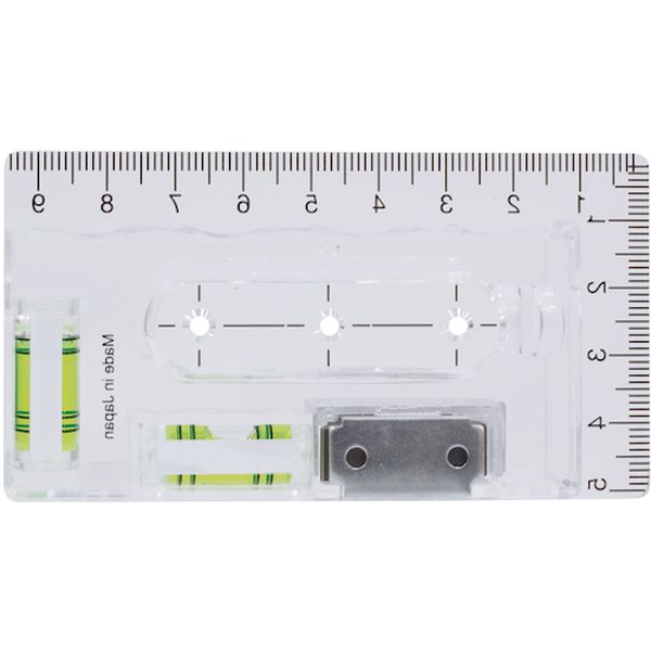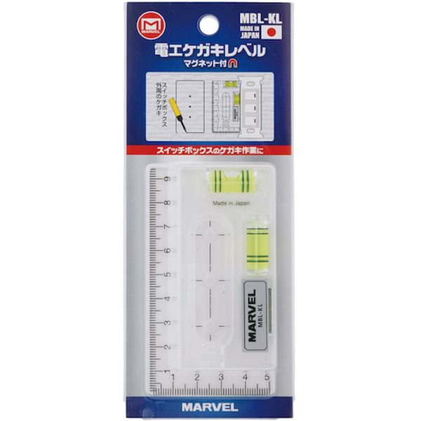 ・持ちやすい波型形状で安定感抜群です。・スイッチボックスのケガキ作業に最適で、取付枠に吸着できるマグネット付です。・ホールソー用のセンター穴付きで、スイッチボックス開口用のセンター出しが簡単にできます。・落下防止穴付きです。・気泡管が暗い場所で数分間発光する蓄光テープ付きです。・埋込式スイッチボックスやコンセントの取付時、窓開け用のケガキ作業や水平垂直の測定に。・長さ(mm):95・高さ(mm):51・厚さ(mm):13・マグネット:1ヵ所・色:透明・気泡管色:グリーン・精度:±2.50mm/1=±0.1432°以内・感度:0.50mm/m=0.0286°・気泡管タイプ:4本線アクリル気泡管・マグネット付・アクリル樹脂、マグネット・生産国 日本・JANコード 4992456503579・質量 38g・コード:537-0670 ・品目:MBLKL