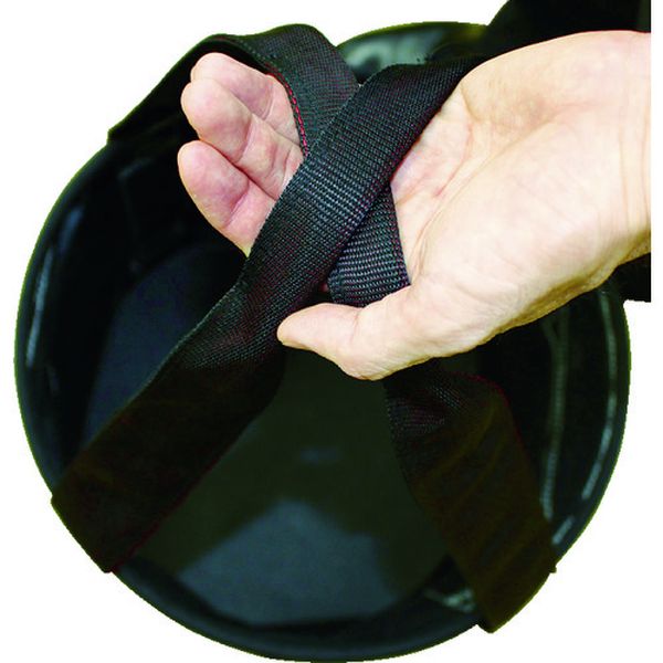・ベルトが底までしっかり通っており、交差して縫製されているため丈夫です。・1本で持っても、2本でも、安定したグリップ感です。・ベルトは黒赤黒の3重構成で擦り切れると内側の赤い生地が見えてきます。・底板が樹脂と木材(集成材)の貼り合わせなので丈夫です。・金属の足は付いていないので、新築の床も傷つけません。・電動工具や材料など重たい物の持ち運びに。・色:黒・径(mm):320・高さ(mm):320・収納重量:50kgまで・本体生地:ポリエステル(PE)・芯:スチールワイヤー・底板:ポリ塩化ビニール(PVC)、木材板・生産国 中国・JANコード 4992456214130・質量 950g・コード:115-9935 ・品目:MDPTB50