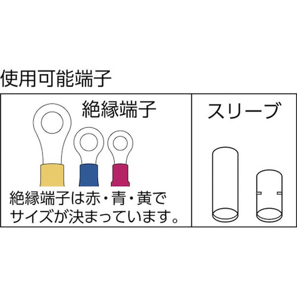 ・MADE IN JAPANの信頼、安全、確実な品質で圧着ができます。・耐久性連続試験回数3万5千回合格です。・適正な圧着ができるまでダイスが開かない成形確認機構を内蔵しています。・手のひらサイズのミニタイプです。・圧着マークがくっきり鮮明です。・端子仮押さえ機能付です。・絶縁被覆付端子・スリーブ端子の圧着に。・全長(mm):180・圧着端子:絶縁被覆付圧着端子、スリーブ・圧着端子([[MM2]]):0.3、0.5、1.25、2・圧着端子([[MM2]])絶縁被覆付圧着端子用:0.3、0.5、1.25、2・本体:スチール・グリップ:エラストマー樹脂・生産国 日本・JANコード 4992456001280・質量 250g・コード:115-1309 ・品目:MH032