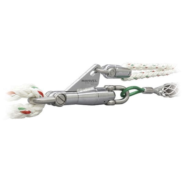 ・ケーブルと予備ロープを同時に牽引できます。・シャックルが回転するのでロープとケーブルが絡まることがなくスムーズです。・牽引時、コーナー部も安心の高強度です。・色:シルバー・最大安全荷重(kN):9.8・適応径:よりもどしφ13mm以下、シャックルφ16mm以下・炭素鋼・樹脂ケース付・管路ではケーブルとロープが絡む為、使用不可・生産国 日本・JANコード 4992456324372・質量 1kg