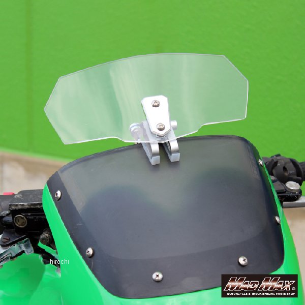 マッドマックス MAD MAX バイク用 延長シールド ショートスクリーン 4mm 風除け クリアバイク用 延長シールド ショートスクリーン 4mm 風除け クリア。こちの商品はスクリーン延長の商品です。既存のシールドに取り付けてご使用ください。専用ステー付属で取り付けはとても簡単です。シールドはABS樹脂製で強度があり、ステーはアルミ製なので腐食耐性優れています。