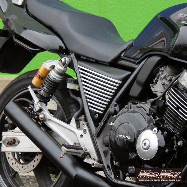 マッドマックス MAD MAX ホンダ アルフィンカバー フィン削出しホンダ CB400SF(NC31)カラー:ブラック【仕様説明】愛車のカスタムに。ブラック塗装済みの商品となっております。アルミ製のオールフィンタイプのサイドカバーです。※注意事項・撮影環境上、色調が異なる場合が御座いますので予めご了承下さい。・また生産ロットにより画像と比べ色が若干異なる場合がございます。予めご了承ください。・海外輸入品となりますので輸送の際の多少の小キズ等御座います。本体を改造又は分解された場合に関しましては保証の対象外となります。予めご了承下さい。・取り付け中に生じた不具合に関しましては当社にて一切責任を負いかねますので予めご了承の上、よろしくお願いします。
