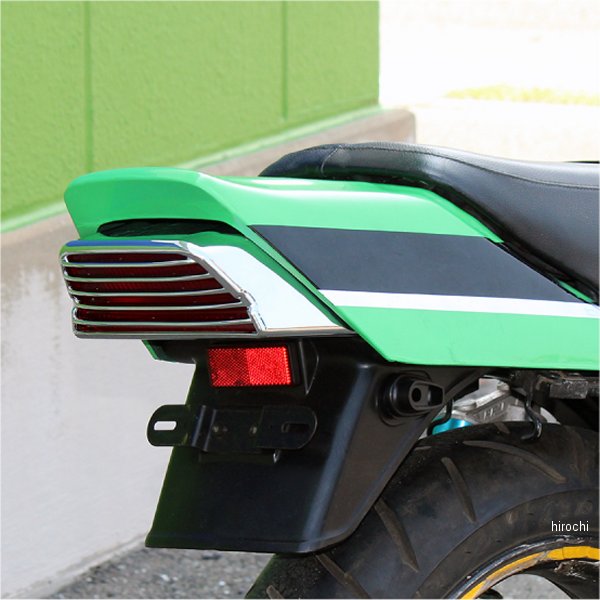 マッドマックス MAD MAX テールランプ ガーニッシュカワサキ ZRX400カラー:メッキ【仕様説明】両面テープで貼り付けるだけの簡単取り付けでドレスアップ効果抜群。ABS樹脂メッキ仕上げの商品です【注意事項】・撮影環境上、色調が異なる場合が御座いますので予めご了承下さい。・また海外輸入品となりますので輸送の際の多少の小キズ等御座います。本体を改造又は分解された場合に関しましては保証の対象外となります。予めご了承下さい。・取り付け中に生じた不具合に関しましては当社にて一切責任を負いかねますので予めご了承の上、よろしくお願いします。