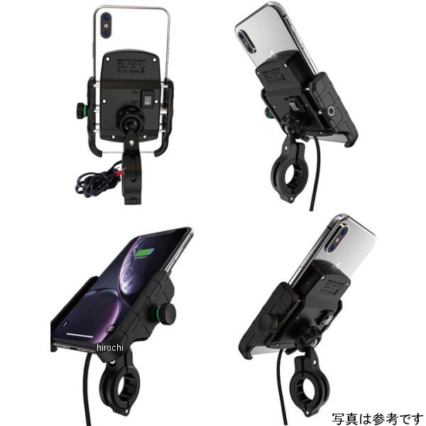 マッドマックス MAD MAX バイク用スマートフォンホルダー 防水 ワイヤレス充電タイプサイズ:横幅65mm~85mm配線長約1540mmカラー:ブルー【素材】プラスチック樹脂、アルミダイカスト【仕様説明】防水等級:IP66付属品:本体1個、ハンドルクランプステー1個、ミラーステー1個、交換用ヒューズ1本、結束バンド2本エンジン始動時にスマートフォンをホルダーにセットするだけでワイヤレスで充電を開始します。IP66防水仕様なので急な雨でも安心してご使用頂けます。※商品は完全防水では御座いません。 水没や激しい雨で長時間使用すると故障の原因となりますのでご使用はお控え下さい。中間ヒューズ付きで過電流が流れても車両、ホルダーをしっかりと保護します。※エンジン停止時は必ずホルダー裏側の電源スイッチをオフにして下さい。 バッテリー上がりの原因となります