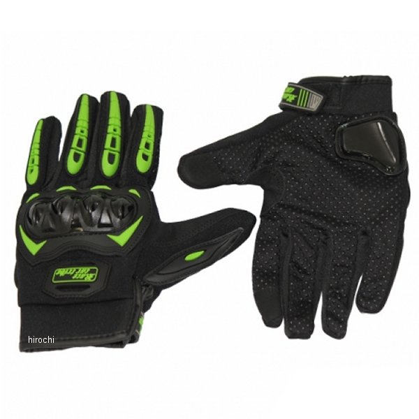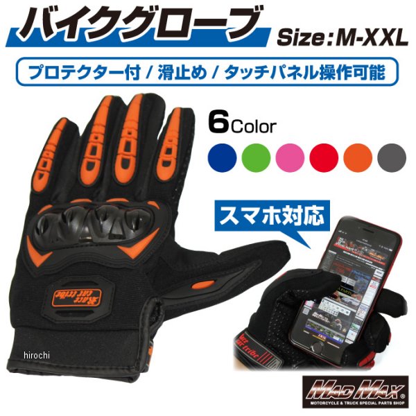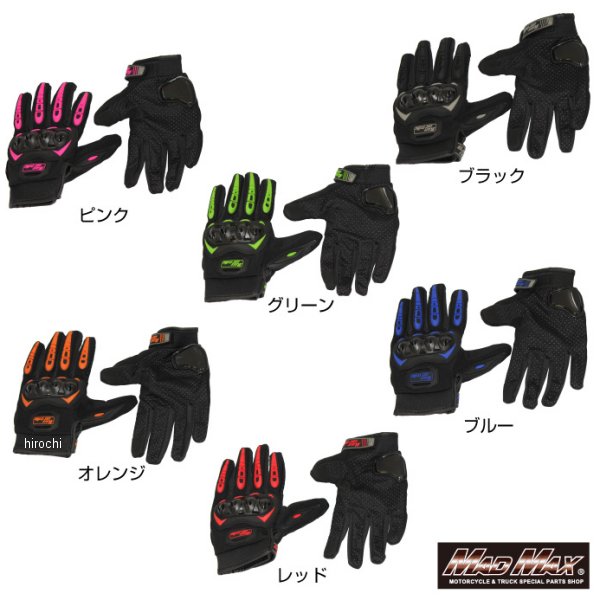 マッドマックス MADMAX ライディンググローブ スマホ対応サイズ:Lサイズ(手幅約9~10cm、手長約19~20cm)カラー:グリーン素材:複合生地【商品説明】通気性の良いメッシュ仕様のグローブです。春、夏、秋、のツーリングシーズにピッタリ。親指と人差し指部分にはタッチスクリーン対応の素材をしておりグローブをつけたままスマホ操作が可能です。コブシ部分と手のひらの小指側にプロテクターを採用。手のひらには滑り止め加工が施されています。