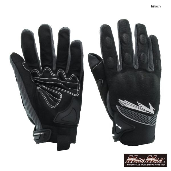 マッドマックス MAD MAX MAXバイク用 ライディンググローブ スマートフォン対応 GST09 グレー XLサイズカラー:グレーXLサイズ(手幅約10~11CM、手長約21~22CM)バイク用 ライディンググローブ スマートフォン対応 GST09 グレー XLサイズ。通気性の良いメッシュ仕様のグローブです。春、夏、秋、のツーリングシーズにピッタリ。親指と人差し指部分にはタッチスクリーン対応の素材をしておりグローブをつけたままスマホ操作が可能です。コブシ部分と手のひらの小指側にプロテクターを採用手のひら部分にはファブリック材を使用しており、転倒時の際の裂傷を軽減します。材質:複合生地撮影環境上、色調が異なる場合が御座いますので予めご了承下さい。また生産ロットにより画像と比べ色が若干異なる場合がございます。予めご了承ください。海外輸入品となりますので輸送の際の多少の小キズ等御座います。本体を改造又は分解された場合に関しましては保証の対象外となります。予めご了承下さい。パーツの取り付けは、整備士資格所有者、専門知識のあるメカニックが行ってください。