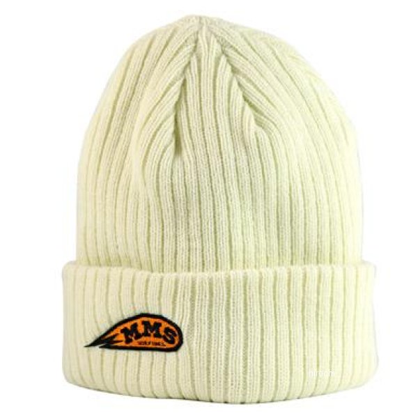 MMS-KC006 GOODS グッズ MMS ニットキャップ ホワイト【仕様説明】「+Motorcycle」を意識した"MMS sculputures"ロゴを大胆に落とし込んだ、SPEED感溢れる「M-Scallop」ワッペンを配置ほどよいボリューム感と伸縮性のある素材で、被り心地の良いリブ編みニットキャップ。飽きのこないシンプルなデザインで、絶妙な立ち上がりのニットキャップをお探しの方に是非◎