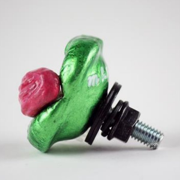 MMS-NB005 GOODS グッズ ERO'LIP NumberBolt バーレスクグリーン汎用材質:本体:レジン ボルト:スチールサイズ:幅:約30mm 高さ:約35mm 奥行:約25mm(ボルト含まず) ボルト:M6-20mm【仕様説明】バーレスクの煌びやかさそのままにぷるんと張りのあるリップがCUTEなナンバーボルト。【Sculpture】リップ本体とベロをそれぞれ製作。2ピース構造にする事でより立体感を持たせていますバーレスクダンサーのリップを表現。ぷるんとしたセクシーさにこだわりました【Painting】ひとつひとつを丁寧にPAINTを施し、量産では絶対に出せないリアルな質感を感じさせる一点モノ。唇に入る絶妙なシワ、舌の裏側の微妙な赤黒さのリアリティを表現しています【Gimmick】M6のボルトを造形に埋め込んでおります。ナンバープレートの割れを軽減する為、大きめのワッシャーを付属。