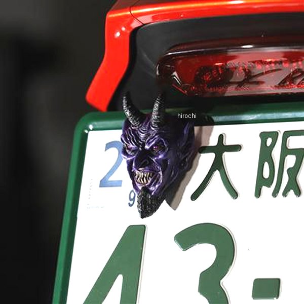 GOODS グッズ SATANISM ナンバーボルト Evil Purpleカラー:Evil Purple素材:本体/レジン、ボルト/スチールサイズ:幅 37mm、高さ 57mm、奥行 24mm(ボルト含まず)、ボルト M6-20mm本体×1(左右ペアではございませんのでご注意ください)適合車種:汎用SATANをテーマに造形千年の終わり底知れぬ深み、獄から解放されるサタンは地の四方にいる連合体ゴグ、マゴグを惑わし、彼らを戦いのために召集する。獄炎の狼煙を上げ地を駆け巡るSATANIC RIDERSと、よりSATANそのものにフォーカスを当てたSATANISMナンバーボルトをラインナップ致しました。人々の心に抱く闇を見透かす鋭い眼光。地に落とされ強い恨みを持つ事により深く刻まれる幾多のしわ。狡猾さが滲み出る不敵な表情にこだわり、地獄の王の威厳を最大限に表現しました。ひとつひとつを丁寧にPAINTを施し、量産では絶対に出せないリアルな質感を感じさせる一点モノ。各シワや目じりには表情をより強力なものにする墨入れを。いかにも邪悪な牙の一本一本にもエイジングを施しあくまでもオリジナルに。ヨハネの黙示録にも説かれる言い伝えをもとに忠実に再現致しました。Making&Monsters オリジナルのスカルプチャにM6のボルトを造形に埋め込み、ナンバーボルト化。ナンバープレートの割れを軽減する為に大きめのワッシャーを付属しております。