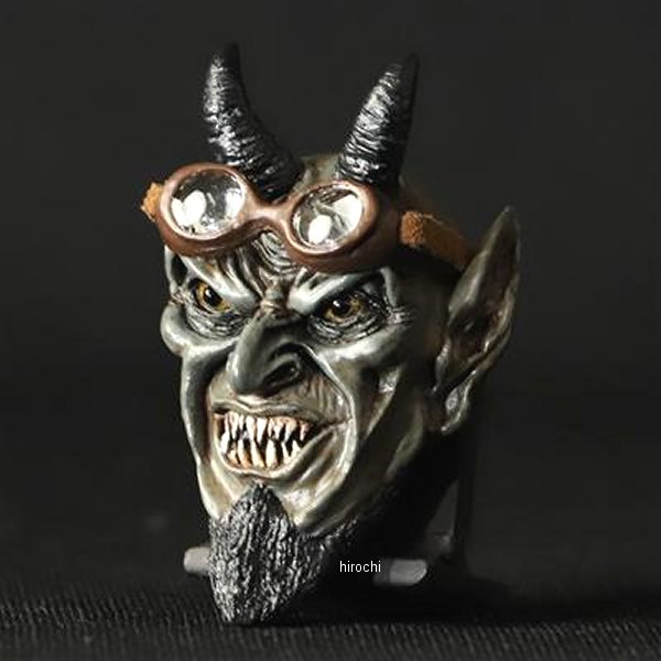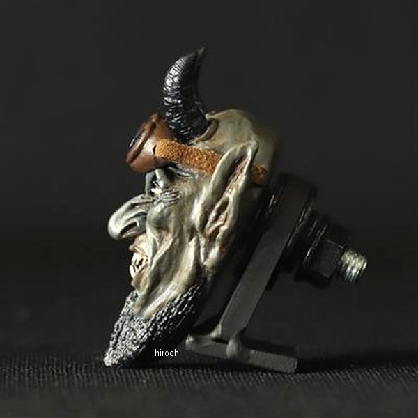 GOODS グッズ SATANIC RIDERS ナンバーボルト Lucifer Blackカラー:Lucifer Black素材:本体/レジン、ボルト/スチールサイズ:幅 37mm、高さ 57mm、奥行 24mm(ボルト含まず)、ボルト M6-20mm本体×1(左右ペアではございませんのでご注意ください)適合車種:汎用SATANをテーマに造形千年の終わり底知れぬ深み、獄から解放されるサタンは地の四方にいる連合体ゴグ、マゴグを惑わし、彼らを戦いのために召集する。獄炎の狼煙を上げ地を駆け巡るSATANIC RIDERSと、よりSATANそのものにフォーカスを当てたSATANISMナンバーボルトをラインナップ致しました。人々の心に抱く闇を見透かす鋭い眼光。地に落とされ強い恨みを持つ事により深く刻まれる幾多のしわ。狡猾さが滲み出る不敵な表情にこだわり、地獄の王の威厳を最大限に表現しました。SATANIC RIDERSではオリジナルゴーグルを制作。透明度の高いレンズにもこだわり、よりバイカーライクなナンバーボルトに。※SATANIC RIDERSのゴーグルの位置は固定されており、目元への装着は不可となります。予めご容赦ください。ひとつひとつを丁寧にPAINTを施し、量産では絶対に出せないリアルな質感を感じさせる一点モノ。各シワや目じりには表情をより強力なものにする墨入れを。いかにも邪悪な牙の一本一本にもエイジングを施しあくまでもオリジナルに。ヨハネの黙示録にも説かれる言い伝えをもとに忠実に再現致しました。Making&Monsters オリジナルのスカルプチャにM6のボルトを造形に埋め込み、ナンバーボルト化。ナンバープレートの割れを軽減する為に大きめのワッシャーを付属しております。