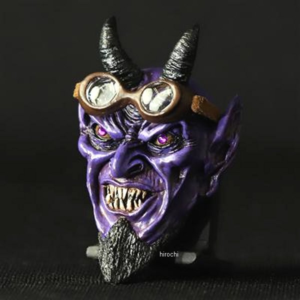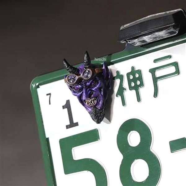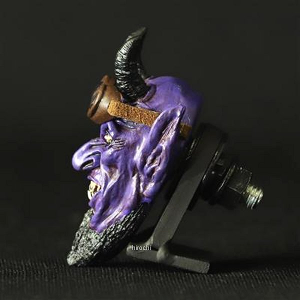GOODS グッズ SATANIC RIDERS ナンバーボルト Evil Purpleカラー:Evil Purple素材:本体/レジン、ボルト/スチールサイズ:幅 37mm、高さ 57mm、奥行 24mm(ボルト含まず)、ボルト M6-20mm本体×1(左右ペアではございませんのでご注意ください)適合車種:汎用SATANをテーマに造形千年の終わり底知れぬ深み、獄から解放されるサタンは地の四方にいる連合体ゴグ、マゴグを惑わし、彼らを戦いのために召集する。獄炎の狼煙を上げ地を駆け巡るSATANIC RIDERSと、よりSATANそのものにフォーカスを当てたSATANISMナンバーボルトをラインナップ致しました。人々の心に抱く闇を見透かす鋭い眼光。地に落とされ強い恨みを持つ事により深く刻まれる幾多のしわ。狡猾さが滲み出る不敵な表情にこだわり、地獄の王の威厳を最大限に表現しました。SATANIC RIDERSではオリジナルゴーグルを制作。透明度の高いレンズにもこだわり、よりバイカーライクなナンバーボルトに。※SATANIC RIDERSのゴーグルの位置は固定されており、目元への装着は不可となります。予めご容赦ください。ひとつひとつを丁寧にPAINTを施し、量産では絶対に出せないリアルな質感を感じさせる一点モノ。各シワや目じりには表情をより強力なものにする墨入れを。いかにも邪悪な牙の一本一本にもエイジングを施しあくまでもオリジナルに。ヨハネの黙示録にも説かれる言い伝えをもとに忠実に再現致しました。Making&Monsters オリジナルのスカルプチャにM6のボルトを造形に埋め込み、ナンバーボルト化。ナンバープレートの割れを軽減する為に大きめのワッシャーを付属しております。