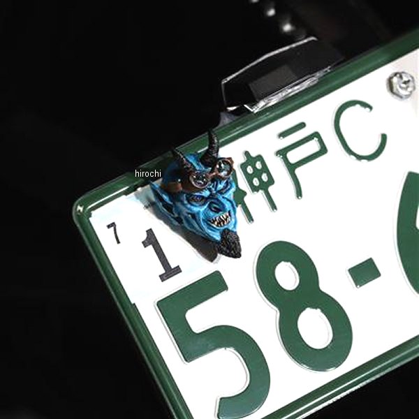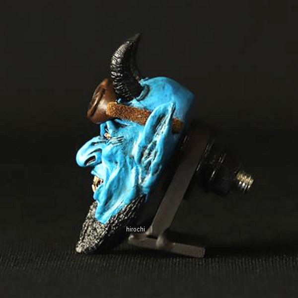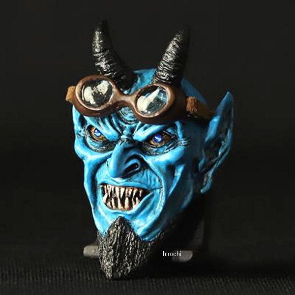 GOODS グッズ SATANIC RIDERS ナンバーボルト Abyss Blueカラー:Abyss Blue素材:本体/レジン、ボルト/スチールサイズ:幅 37mm、高さ 57mm、奥行 24mm(ボルト含まず)、ボルト M6-20mm本体×1(左右ペアではございませんのでご注意ください)適合車種:汎用SATANをテーマに造形千年の終わり底知れぬ深み、獄から解放されるサタンは地の四方にいる連合体ゴグ、マゴグを惑わし、彼らを戦いのために召集する。獄炎の狼煙を上げ地を駆け巡るSATANIC RIDERSと、よりSATANそのものにフォーカスを当てたSATANISMナンバーボルトをラインナップ致しました。人々の心に抱く闇を見透かす鋭い眼光。地に落とされ強い恨みを持つ事により深く刻まれる幾多のしわ。狡猾さが滲み出る不敵な表情にこだわり、地獄の王の威厳を最大限に表現しました。SATANIC RIDERSではオリジナルゴーグルを制作。透明度の高いレンズにもこだわり、よりバイカーライクなナンバーボルトに。※SATANIC RIDERSのゴーグルの位置は固定されており、目元への装着は不可となります。予めご容赦ください。ひとつひとつを丁寧にPAINTを施し、量産では絶対に出せないリアルな質感を感じさせる一点モノ。各シワや目じりには表情をより強力なものにする墨入れを。いかにも邪悪な牙の一本一本にもエイジングを施しあくまでもオリジナルに。ヨハネの黙示録にも説かれる言い伝えをもとに忠実に再現致しました。Making&Monsters オリジナルのスカルプチャにM6のボルトを造形に埋め込み、ナンバーボルト化。ナンバープレートの割れを軽減する為に大きめのワッシャーを付属しております。