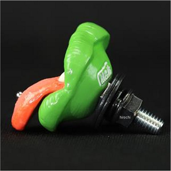 グッズ GOODS ナンバーボルト BRATTY LIP Tongue Piercing バイカラー汎用タイプ:グリーンサイズ:幅:約31mm 高さ:約41mm 奥行:約30mm(ボルト含まず) ボルト:M6-20mm材質:本体:レジン、ボルト:スチール1個売り(左右ペアではございませんのでご注意ください)【商品説明】「BRATTY(小悪魔)」をテーマにちょっぴりハードなデザインの「BRATTY LIP」ERO'LIPリリースから5年。今回は「BRATTY(小悪魔)」をテーマにちょっぴりハードなデザインの「BRATTY LIP」をリリース。細部まで作り込んだこだわりの造形をお楽しみください。歯茎から歯の1本1本までリアリティにこだわり造形。ザラザラとした質感を持たせたこだわりの舌はクールなSplit Tongue(スプリットタン)とキュートなTongue Piercing(舌ピアス)をラインナップ致しました。キュートなポップさ際立つソリッドカラー、煌びやかなバーレスク(ラメ)カラー、ダークポップ感溢れるバイカラーの3種類をラインナップ。唇のシワから歯、歯茎。舌のディティールまでリアルさにこだわり表現しています。Making&Monsters オリジナルのスカルプチャにM6のボルトを造形に埋め込み、ナンバーボルト化。ナンバープレートの割れを軽減する為に大きめのワッシャーを付属しております。