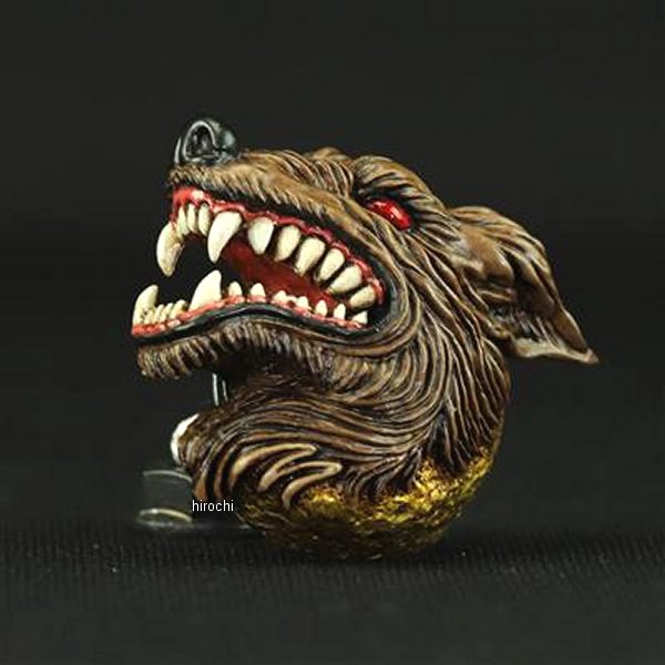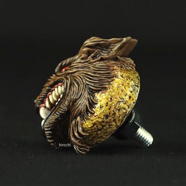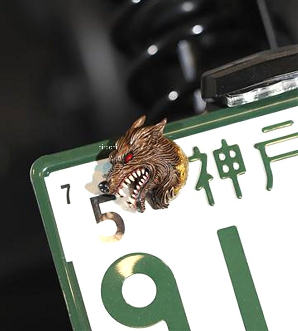 GOODS グッズ HOWLINGWOLF BY FULLMOON ナンバーボルト STRENGTH -力-素材:本体/レジン、ボルト/スチールサイズ:幅 約45mm、高さ 約36mm、奥行 約16mm(ボルト含まず)、ボルト M6-20mm本体×1(左右ペアではございませんのでご注意ください)適合車種:汎用HOWLINGWOLF BY FULLMOON赤くたぎる眼孔には生命力や力、情熱を表し、魔除けの意を宿す勇気と強さ象徴する狼にカラースピリチュアルを掛け合わせ、満月の夜にその力を増す力強いウルフを表現。歯茎から牙の1本1本までリアリティにこだわり、非常に複雑な造形を1ピースにて仕上げ。月と一体化した狼は疾走感を感じさせる毛流れに、Mに刻印も忍ばせました。知恵、力、守護。それぞれの象徴を表現するカラーラインナップに加え、造形をよりお楽しみ頂く墨入れも追加。牙や歯茎には光沢を持たせ、魂を吹き込まれたウルフを表現しています。Making&MonstersオリジナルのスカルプチャにM6のボルトを造形に埋め込み、ナンバーボルト化。ナンバープレートの割れを軽減する為に大きめのワッシャーを付属しております。