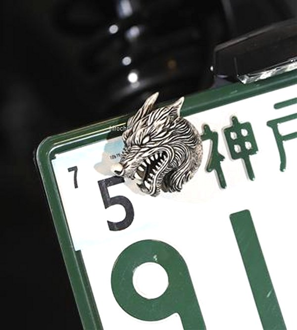 GOODS グッズ HOWLINGWOLF BY FULLMOON ナンバーボルト SCULPTURE -造形-素材:本体/レジン、ボルト/スチールサイズ:幅 約45mm、高さ 約36mm、奥行 約16mm(ボルト含まず)、ボルト M6-20mm本体×1(左右ペアではございませんのでご注意ください)適合車種:汎用HOWLINGWOLF BY FULLMOON赤くたぎる眼孔には生命力や力、情熱を表し、魔除けの意を宿す勇気と強さ象徴する狼にカラースピリチュアルを掛け合わせ、満月の夜にその力を増す力強いウルフを表現。歯茎から牙の1本1本までリアリティにこだわり、非常に複雑な造形を1ピースにて仕上げ。月と一体化した狼は疾走感を感じさせる毛流れに、Mに刻印も忍ばせました。知恵、力、守護。それぞれの象徴を表現するカラーラインナップに加え、造形をよりお楽しみ頂く墨入れも追加。牙や歯茎には光沢を持たせ、魂を吹き込まれたウルフを表現しています。Making&MonstersオリジナルのスカルプチャにM6のボルトを造形に埋め込み、ナンバーボルト化。ナンバープレートの割れを軽減する為に大きめのワッシャーを付属しております。