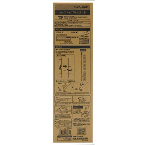 ・水拭きに適した耐久性の高いレーヨンタイプです。・幅(mm):230・長さ(mm):1420・タイプ:ねじ込み式組立ハンドル・適合モップ:#8、240mmサイズ・製品サイズ幅(mm):230・製品サイズ長さ(mm):1420・個装サイズ幅(mm):107・個装サイズ奥行(mm):67・個装サイズ高さ(mm):445・個装重量(g):520・ハンドル:アルミパイプ(φ約22mm)・ヘッド:PP・フック:PE・モップ糸:ポリエステル、レーヨン ・生産国 日本・JANコード 4903180209682・質量 415g・コード:691-9935 ・品目:MO957000JMB
