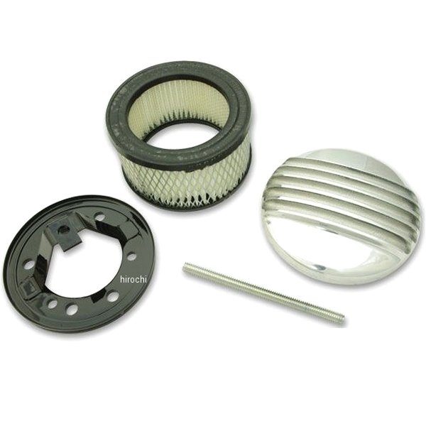 ガッツクローム MOONノーネームエアクリーナートップセット汎用(CV/Eキャブ用)どんなバイクにも似合うエアクリーナーキットです。直径4インチのアルミキャストフィン付きカバーが特徴です。フィルターとバックプレートがセットで、CVキャブとEキャブにそのまま取り付け可能です。※キャブへのマウントボルトは付属しません。