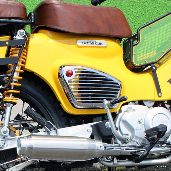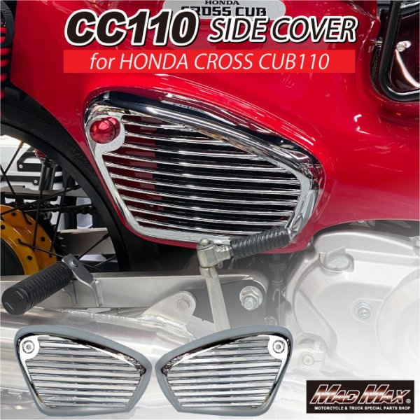 マッドマックス MAD MAX Mr Quick製 サイドカバーホンダ スーパーカブ50(AA09型)ホンダ スーパーカブ50PRO(AA07型)ホンダ スーパーカブ110(JA44型/JA59型)ホンダ スーパーカブ110PRO(JA42型/JA61型)ホンダ クロスカブ50(AA06型)ホンダ クロスカブ110(JA45型/JA60型)カラー:メッキホンダ CC50/CC110 クロスカブ/スーパーカブ用 サイドカバー メッキ。純正サイドカバーと交換するだけなので取り付けはとても簡単です。ABS樹脂メッキ仕上げでドレスアップ効果抜群。※年式、グレードにより形状が異なる場合が御座います。ご購入前に必ず形状の確認をお願い致します。