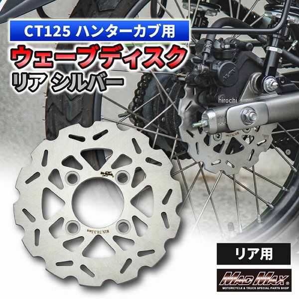 Mr Quick製190mm ウェーブリアディスクホンダ CT125 ハンターカブ(JA55/JA65)カラー:シルバー【商品説明】ウェーブ形状でフロント周りのカスタムにおススメです。純正ディスクと同じサイズなのでノーマルキャリパーのままで、取付け可能です。※注意事項※撮影環境上、色調が異なる場合が御座いますので予めご了承下さい。また生産ロットにより画像と比べ色が若干異なる場合がございます。予めご了承ください。海外輸入品となりますので輸送の際の多少の小キズ等御座います。