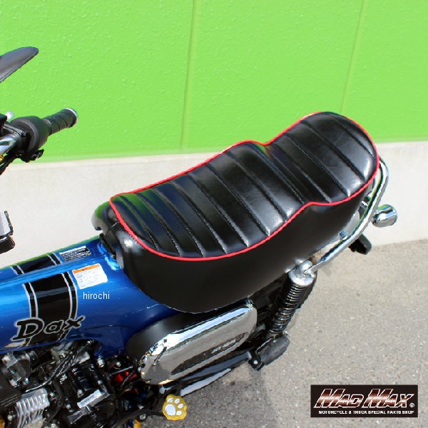 マッドマックス MAD MAX Mr Quick製 ホンダ DAX125 ST125用 チョビ三段シート ブラック、レッドホンダ ダックス125(JB04、JB06)Mr Quick製 ホンダ DAX125(ST125)用 チョビ三段シート ブラック/レッド。純正シートよりも低く足つきが改善します!※ボルト、ワッシャーは純正をご使用ください。防水仕様のシートですが、ステッチ部分より浸水する場合が御座います。雨天時に使用の際は防水カバー等を掛けてのご使用をおススメします。
