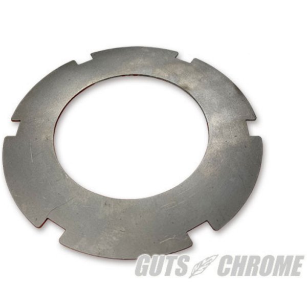 MS-002 ガッツクローム SHELL GUARD 4速アルミクラッチシェル用 170mm※ガッツクロームのベルトドライブキット(品番A100-0208s)専用パーツです。1941年~84年までのベルトドライブのアルミ製クラッチシェルがクラッチ板との摩擦による削れ、ダメージを防ぐために作られた保護プレートで1.2ミリの鉄板を高精度レーザーカットにて製作してあり、クラッチシェルの一番奥に無加工で入れるだけでシェルの削れを防げます。厚みが1.2ミリなのでクラッチスプリングのセット長を約一ミリ長くするだけで他に特別な作業は何も必要なく、通常のクラッチ組付けと同じ作業をするだけです。すでに軽微に削れてしまっているシェルにも使用できますが、削れによる段差が酷い場合はシェルを新品にしてからご使用ください。新品のベルトドライブからのご使用をお勧めします。外径170mmガッツクロームのベルトドライブキット(品番A100-0208s)にそのままご使用いただけます。※BDLのキットには174mm(品番MS-001)の方をご使用ください。※メーカー特許出願中メーカー:みつき製作所