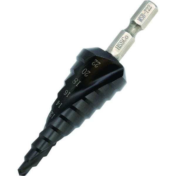 ・窒化チタンアルミコーティングにより、抜群の耐摩耗性と耐熱性を実現しました。・切りくず、切り粉が付きにくい為、作業性が向上します。・鉄板(4.0mm以下)、ステンレス(1.6mm以下)、アルミ、銅、プラスチックなどの穴あけ・段幅(mm):5.2(5.5)・段数(段):10・シャンク形状:六角軸・シャンク径(mm):対辺6.35・穴あけ寸法(φ):4、6、8、10、12、14、16、18、20、22・全長(mm):85・表面処理:窒化チタンアルミコーティング・穴あけ寸法(φmm):(4)、6、8、10、12、14、16、18、20、22・スパイラル仕様・6角軸シャンク・有効切断能力:9段(4/5/6/7/8/9/10/11/12)・お勧めする回転数(r.p.m):鉄金属(600~900)、ステンレス(300~450)・インパクトドライバー対応・コバルトハイス鋼(HSS-Co)・穴あけ寸法の()で表示しているサイズは、段幅が()の数値になります。・生産国 日本・JANコード 4992456310337・質量 65g・コード:179-8848 ・品目:MSBT22