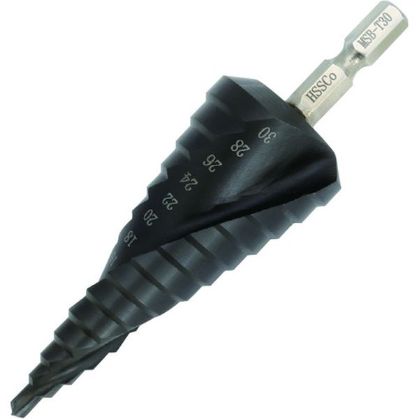 ・窒化チタンアルミコーティングにより、抜群の耐摩耗性と耐熱性を実現しました。・切りくず、切り粉が付きにくい為、作業性が向上します。・鉄板(4.0mm以下)、ステンレス(1.6mm以下)、アルミ、銅、プラスチックなどの穴あけ・段幅(mm):5.0(5.5)・段数(段):14・シャンク形状:六角軸・シャンク径(mm):対辺6.35・穴あけ寸法(φ):4、6、8、10、12、14、16、18、20、22、24、26、28、30・全長(mm):101・表面処理:窒化チタンアルミコーティング・穴あけ寸法(φmm):(4)、6、8、10、12、14、16、18、20、22、24、26、28、30・スパイラル仕様・6角軸シャンク・有効切断能力:9段(4/5/6/7/8/9/10/11/12)・お勧めする回転数(r.p.m):鉄金属(600~900)、ステンレス(300~450)・インパクトドライバー対応・コバルトハイス鋼(HSS-Co)・穴あけ寸法の()で表示しているサイズは、段幅が()の数値になります。・生産国 日本・JANコード 4992456310344・質量 150g・コード:179-7374 ・品目:MSBT30