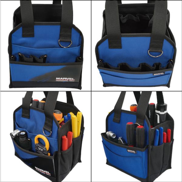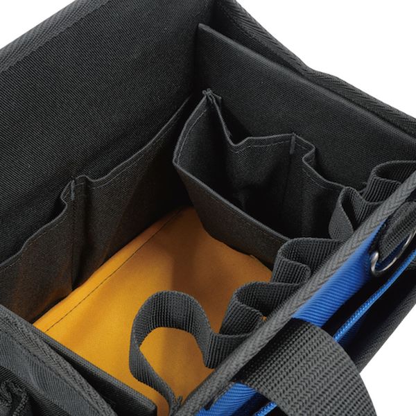 ・コンパクトながら収納スペースが充実しているため、工具の分類や整理に便利です。・内外に大きさの異なるポケットやベルトホルダーを多数備えているので、様々な工具に対応します。・直径30mmの底足4個付でゴム製なので床を傷付けません。・底や両側面に樹脂板入りなので頑丈で型崩れしにくくなってます。・使用しないときは折りたたむことができます。・工具類などの収納に。・色:黒、青・幅(mm):250・奥行(mm):180・高さ(mm):270・ポケット数(個):29・最大耐荷重10KG、内外ポケット付き、ショルダーベルト別売・1680/600デニールポリエステル生地、スチール、ゴム・生産国 中国・JANコード 4992456217070・質量 1070g・コード:580-4115 ・品目:MTB258