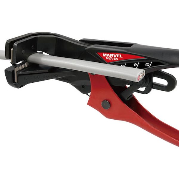 ・刃の深さ調整不要で、軽くスムーズにストリップ出来ます。・ハンドル荷重が20%軽減しました(当社比)。・ストリップしやすい目盛付です。・バネをレバー内に収納、使いやすくなり、バネの折れや外れの故障を軽減しました。・VVF、EM-EEFケーブルの外被(シース)及び内被(絶縁体)の剥離に。・全長(mm):180・適合電線(mm):1.6(2芯・3芯)、2.0(2芯・3芯)・適合電線:VVF、EM-EEF・電気工事士技能試験推奨工具・スチール・アルミ・線材メーカーによって被覆の厚み、材質などが異なり、ストリップ出来ない事があります。・生産国 日本・JANコード 4992456201116・質量 360g・コード:429-7992 ・品目:MVA5A