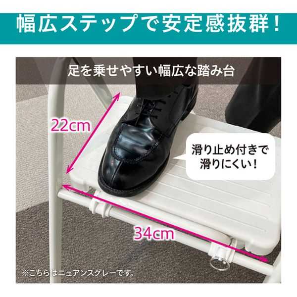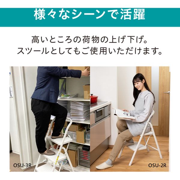・様々なシーンで活用できる折りたたみステップです。・踏み台としてはもちろん、ちょっとした腰掛け、ガーデニングなどのディスプレイにもお使いいただけます。・リング式の自動ロック機能付きです。開閉ストッパーを使用することにより、使用時・収納時ともに安全が確保できます。・滑りにくく、床を傷付けにくい脚キャップ付きです。・使用しない時は、折りたたんでコンパクトに収納できます。・最大使用質量(kg):100・天板高さ(m):0.67・天板寸法(mm):340×220・段数(段):3・踏ざん踏面幅(mm):340・収納時寸法(mm)全長:1090・収納時寸法(mm)幅:400・収納時寸法(mm)厚さ:80・色:ダークグレー・本体サイズ(mm):約幅400×奥行600×高さ960・キャスター:無・3段タイプ・リング式開閉ストッパー付・フレーム:スチール(エポキシ樹脂塗料)、ステップ:ポリプロピレン・生産国 中国・JANコード 4967576692069・質量 5.600kg・コード:629-8066 ・品目:OSU3RDH