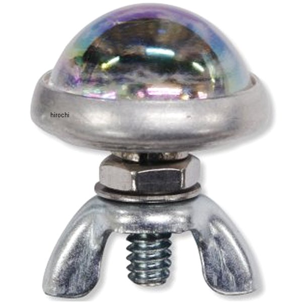 ガッツクローム Red Fox ガラスレンズリフレクターRedFox製ラウンドカットレンズカラー:レインボーレンズ直径:約21mm本体直径:約24.5mmスタッドサイズ:No.10-24首下:約15mmウイングナット付き現地職人のハンドメイドでひとつひとつ製作されたクオリティに拘った逸品です。安定性、寿命、明るさ、反射率を確保するために、正確にカットされ、手作業で選別され、固定具にしっかりと取り付けまで丁寧に行っています。ボディはアルミのシルバー仕上げ、ジャムナット・フラットワッシャーはステンレス製、スタッド・スプリングワッシャー・ウイングナットはスチール製になります。※スプリングワッシャーについては仕入れロットにより、スチールとステンレスが混在する場合がございます。※ハンドメイドで製作されており簡易パッケージでの入荷の為、仕上がりの個体差、作業工程上での小傷等はございます。