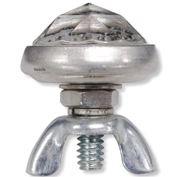 ガッツクローム Red Fox ガラスレンズリフレクターRedFox製18面プリズムカット(ダイヤカット)レンズカラー:クリアレンズ直径:約21mm本体直径:約24.5mmスタッドサイズ:No.10-24首下:約15mmウイングナット付き現地職人のハンドメイドでひとつひとつ製作されたクオリティに拘った逸品です。安定性、寿命、明るさ、反射率を確保するために、正確にカットされ、手作業で選別され、固定具にしっかりと取り付けまで丁寧に行っています。ボディはアルミのシルバー仕上げ、ジャムナット・フラットワッシャーはステンレス製、スタッド・スプリングワッシャー・ウイングナットはスチール製になります。※スプリングワッシャーについては仕入れロットにより、スチールとステンレスが混在する場合がございます。※ハンドメイドで製作されており簡易パッケージでの入荷の為、仕上がりの個体差、作業工程上での小傷等はございます。