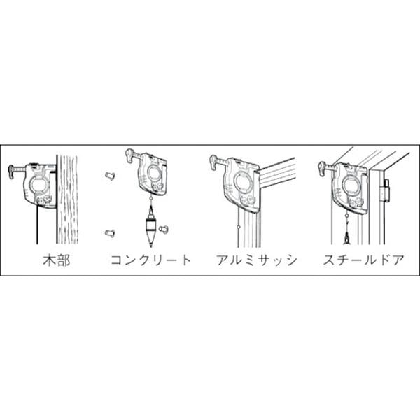 ・木部、鉄部、アルミサッシ、コンクリートに取り付け可能です。・不用意な針の飛び出しを防止する針ロック機構を搭載しています。・本体を開けずに簡単に糸交換ができるガイド糸構造を採用しています。・見やすい蛍光黄色糸を使用しています。・強力磁石を採用。磁束密度130mTです。・ケースはABS樹脂ボディ。エラストマー樹脂で一体成型。滑りにくい。・建築用下げ振り保持器。・糸長さ(m):7・適合下げ振り重量(g):100~1000・自動巻取り式・生産国 中国・JANコード 4975364057037・質量 310g・コード:387-1592 ・品目:PCG3700W