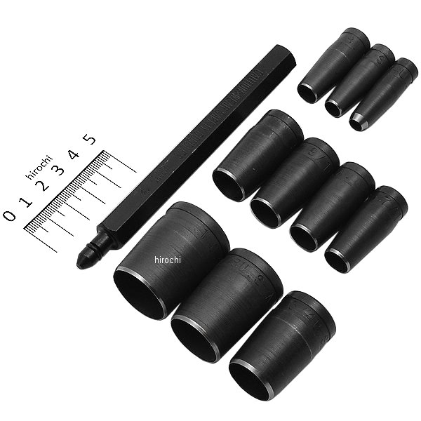 ガスケットポンチセットです。ガスケットなど、柔らかい素材に穴を開けます。全長 5-3/8インチの芯棒とポンチ 10ピース (1/4インチ、5/6インチ、3/8インチ、7/16インチ、1/2インチ、9/16インチ、5/8インチ、3/4インチ、7/8インチ、1インチ)が収納クースに入っています。※商品お届け時期につきまして、通常は一か月半前後となっておりますが仕入れ先の出荷状況により、お時間を頂戴する場合がございます。※商品手配後に、供給不可となる場合がございます。あらかじめご了承のうえご注文ください。