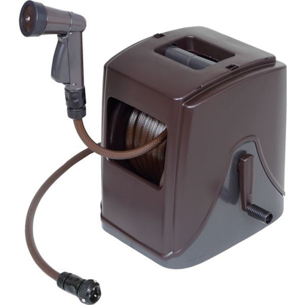 ・フルカバータイプのホースリールです。・カバーは取り外し可能です。・ノズルはバケツの縁にひっかけ、水を溜めることができます。・ノズルはワンタッチで通水止水ができ、水形の切替も簡単なスリーブ式を採用しています。・ホース全長(m):30・適合ホース内径×外径(mm):12×16・使用圧力(MPa):0.7・幅(mm):398・奥行(mm):375・高さ(mm):401・本体色:ブラウン・色:ブラウン・蛇口側ホース長さ(m):1・蛇口側ホース長さ:1m・中黒防藻ホース仕様・適合蛇口径:丸型蛇口外径16mm・本体・ハンドル:ポリプロピレン樹脂・ホース:軟質塩化ビニール(PVC)・ノズル:ABS樹脂・室内での使用、飲料用や業務用、飼育用としての使用はおやめください。・生産国 日本・JANコード 4971715125837・質量 5.500kg