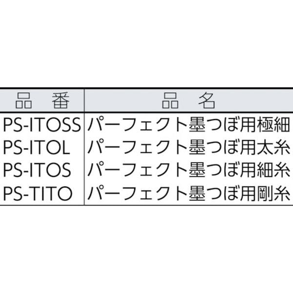 ・パーフェクト墨つぼ用の交換糸です。・パーフェクト墨つぼ用極細糸30m・品名:パーフェクト墨つぼ用細糸・適合本体:パーフェクト墨つぼ・タイプ:細糸・色:白・糸長さ(m):40・線径(mm):0.6・糸:ナイロン・糸に「スレ・キレ・ホツレ」が生じた場合はすぐに新しい糸に交換し、常に安全に作業が行なえるよう心がけて下さい。・生産国 中国・JANコード 4975364054326・質量 18g・コード:813-4618 ・品目:PSITOS