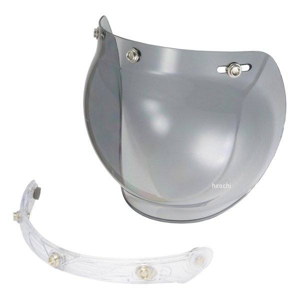リード工業 バブル&フリップアップベースセット汎用カラー:ライトスモーク【仕様説明】バブルシールドと開閉機構を持つステー(フリップアップベース)のセット。ハードコート&UVカット加工のシールドは耐久性抜群。可動式ステーを装着し、フリップアップベースは3ホックタイプヘルメット全般に対応。左右のホックは横15mmの範囲で調整可能。